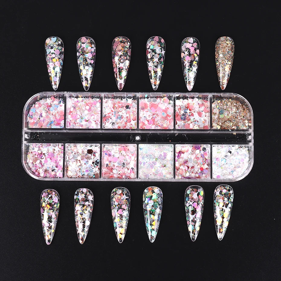 12 Grids Nail Glitter Flakes