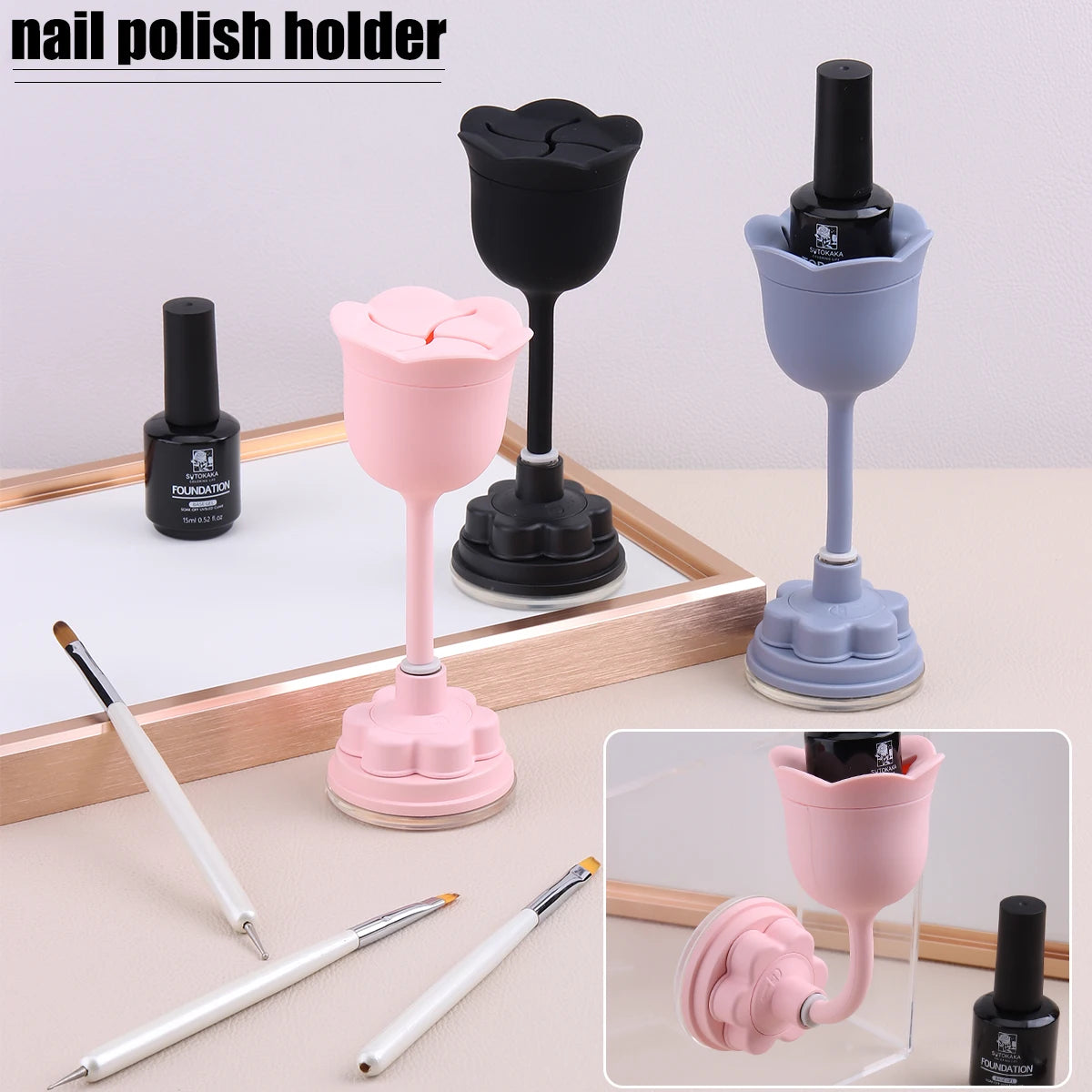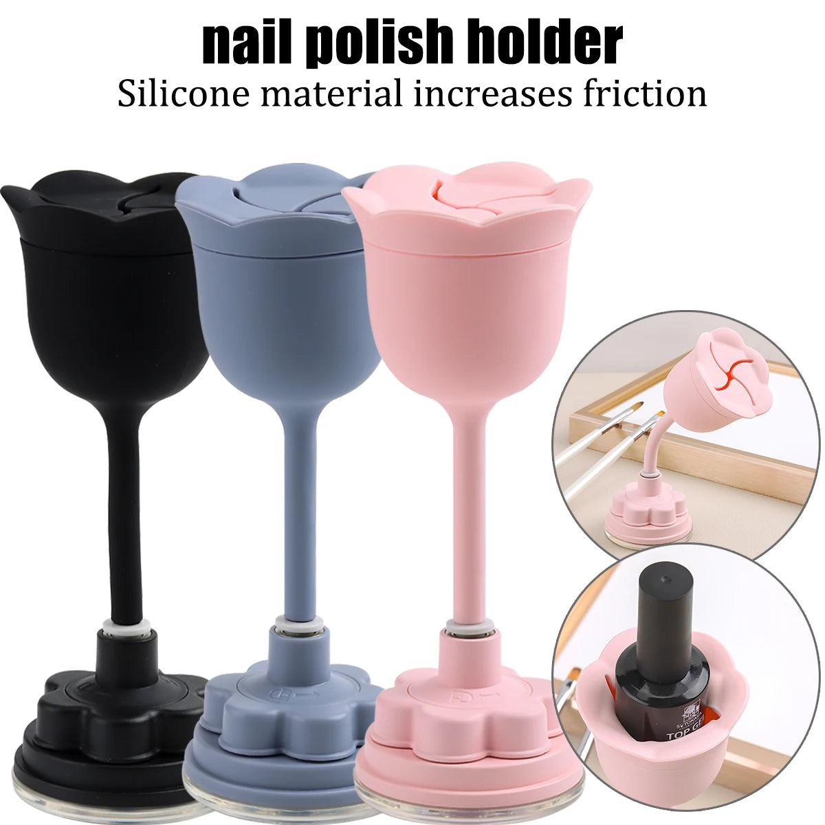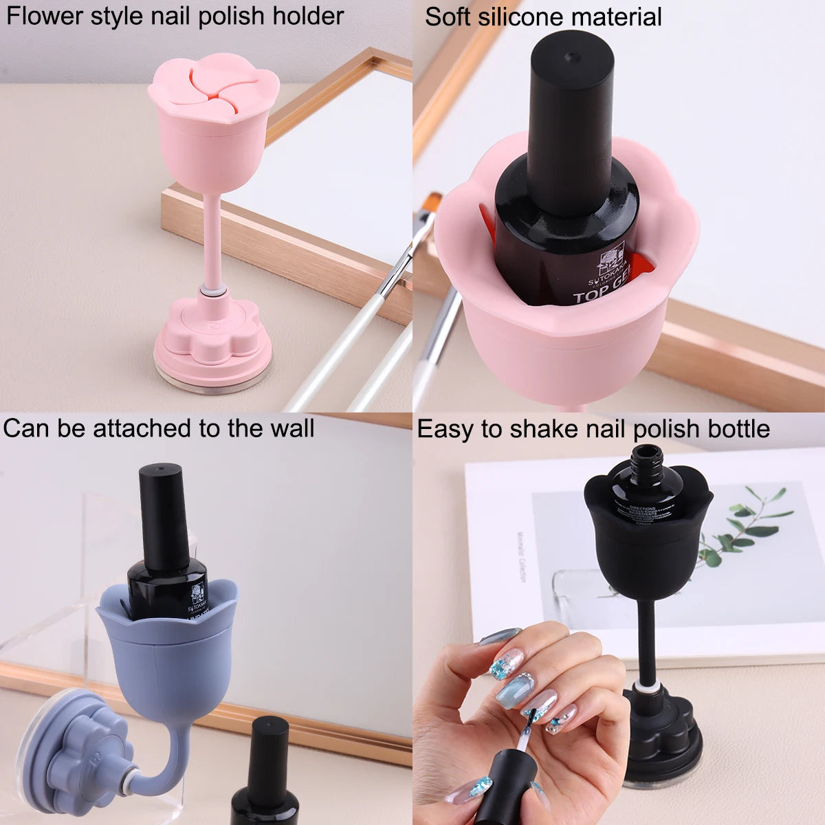 Nail polish holder, floral-style nail polish holder, pink and blue Durable black plastic nail art tools, perfect for manicures and pedicures